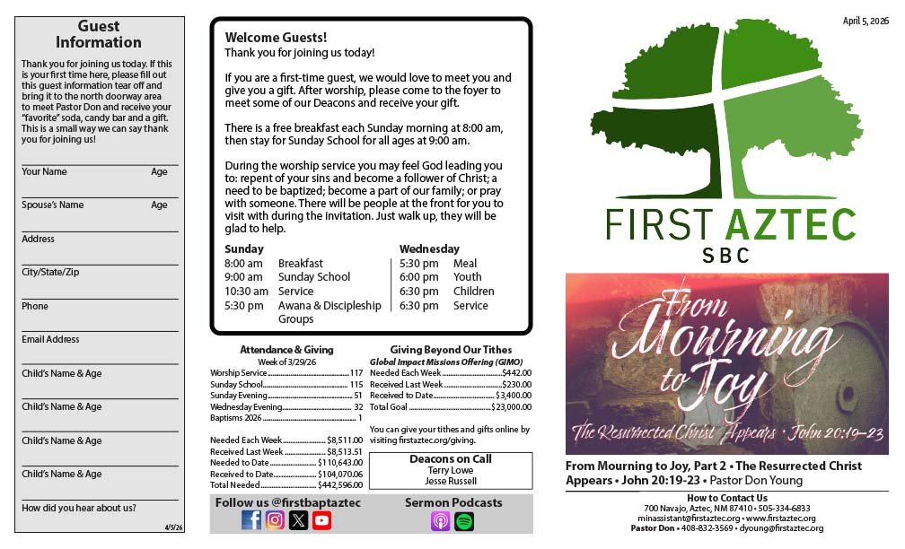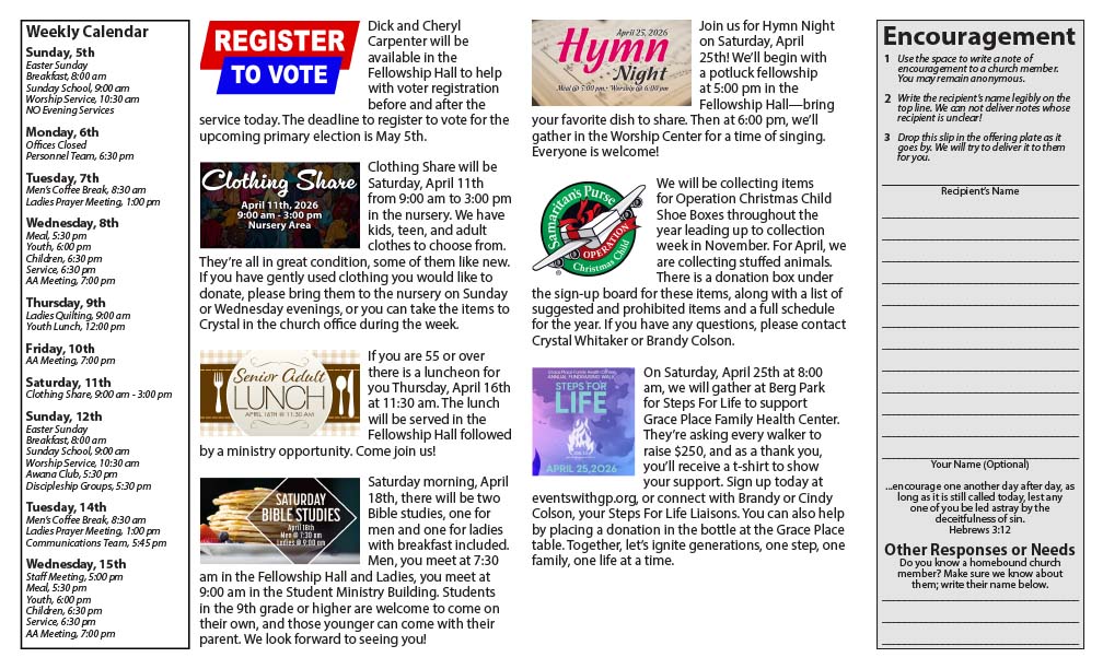 Bulletin – April 5, 2026 Bulletin for the week of April 5, 2026. Click on an image to download the PDF to your computer. You may also print it if you wish.